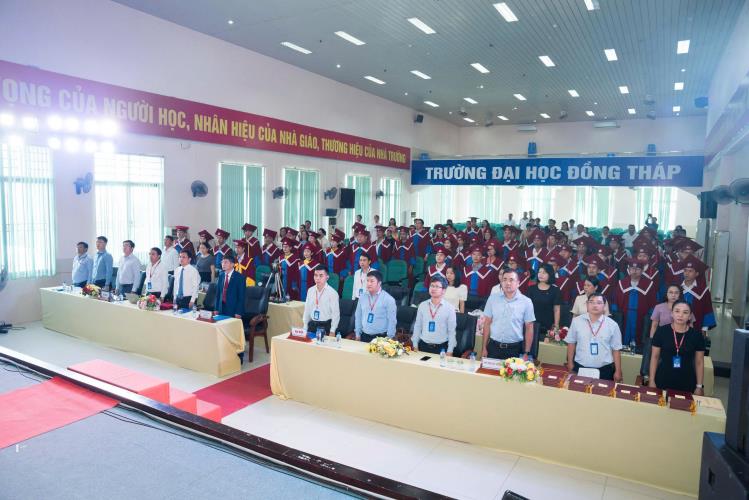 Tham dự buổi lễ có PGS.TS. Hồ Sỹ Thắng – Phó Hiệu trưởng Trường Đại học Đồng Tháp, cùng lãnh đạo các phòng, khoa, trưởng chuyên ngành đào tạo, đông đảo tân Thạc sĩ và gia đình.