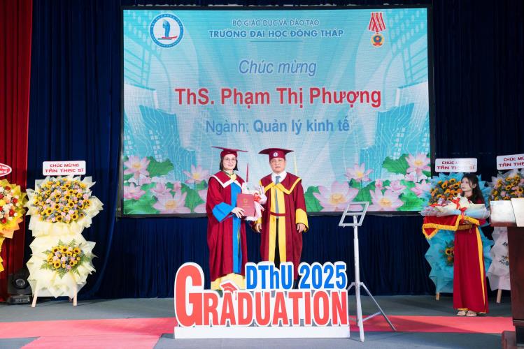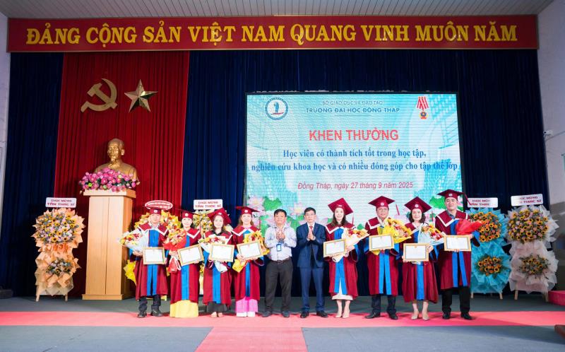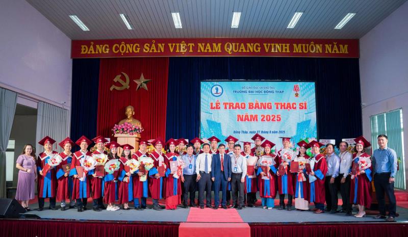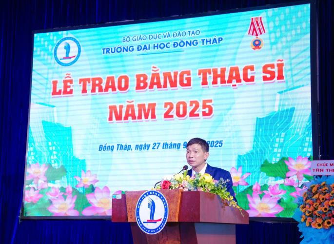 Ngày 27/9, Trường Đại học Đồng Tháp tổ chức Lễ trao bằng thạc sĩ năm 2025 cho học viên khóa 11 và 12 thuộc các chuyên ngành: Quản lý kinh tế, Khoa học môi trường, Hóa lý thuyết và Hóa lý.