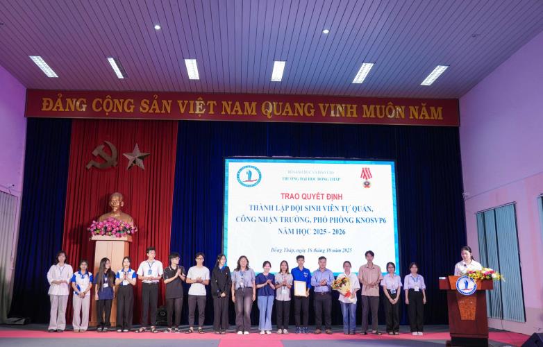 Dịp này, Trường Đại học Đồng Tháp tuyên dương 16 cá nhân thuộc Đội Sinh viên tự quản và các Trưởng, Phó phòng ký túc xá đã hoàn thành xuất sắc nhiệm vụ năm học 2024–2025. Đồng thời, Trung tâm Dịch vụ phối hợp cùng các đơn vị liên quan kiện toàn Đội Sinh viên tự quản, công nhận Trưởng, Phó phòng tại Ký túc xá B6 và Khu nhà ở sinh viên Phường 6, phát huy tinh thần trách nhiệm và gắn kết trong công tác quản lý, hỗ trợ sinh viên.