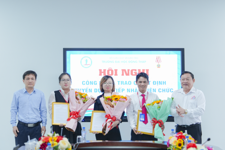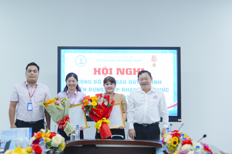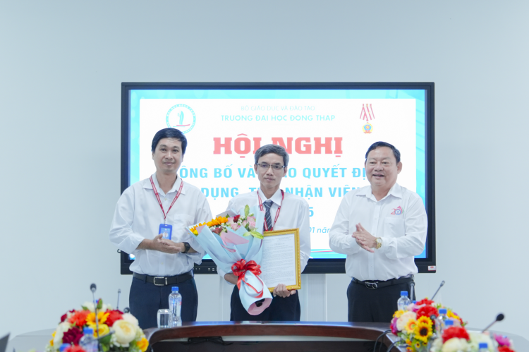 Tại chương trình, đại diện Phòng Tổ chức Cán bộ công bố và trao Quyết định về việc công nhận kết quả tuyển dụng viên chức đợt 1 năm 2025. Trong đợt tuyển dụng lần 1 năm 2025, có tổng cộng 9 thí sinh đã trúng tuyển vào các vị trí công tác tại Trường Đại học Đồng Tháp, bao gồm các đơn vị: Khoa Kinh tế - Luật, Khoa Nông nghiệp, Tài nguyên và Môi trường, Khoa Sư phạm Khoa học xã hội, Trường Sư phạm, Khoa Giáo dục Tiểu học- Mầm non, Trường SP, Phòng Hành chính - Tổng hợp, Phòng Công tác Đảng và Công tác sinh viên.