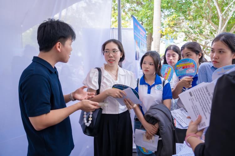 Bên cạnh đó, Thầy cũng dành lời khuyên cho các bạn sinh viên về sự chủ động trong nghề nghiệp: “Ngày hội hôm nay là cơ hội quý giá để các em hiểu mình, hiểu nghề và hiểu thị trường lao động. Các em hãy chủ động, tự tin nắm bắt cơ hội. Một công việc phù hợp không chỉ đến từ kiến thức, mà còn đến từ thái độ, ý chí và sự chuẩn bị kỹ lưỡng của chính các em”