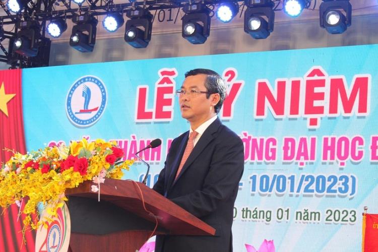 Phát biểu tại buổi lễ, Thứ trưởng Bộ GD&ĐT Nguyễn Văn Phúc ghi nhận những nỗ lực của các thế hệ lãnh đạo, cán bộ, giảng viên của nhà trường trong hành trình 20 năm thành lập Trường ĐH Đồng Tháp và 48 năm truyền thống đào tạo giáo viên và cán bộ quản lý giáo dục, đặc biệt là công tác đào tạo nhân lực chất lượng cao phục vụ cho sự phát triển kinh tế - xã hội tỉnh Đồng Tháp nói riêng, vùng ĐBSCL và cả nước nói chung.