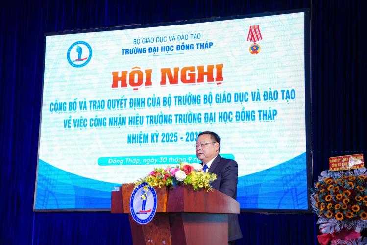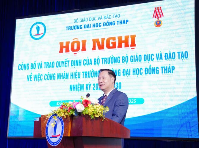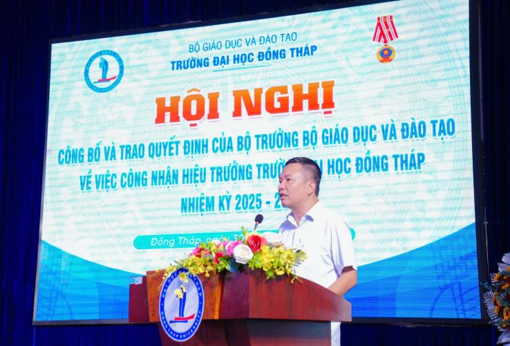 Ngày 30/9, Trường Đại học Đồng Tháp long trọng tổ chức Lễ công bố và trao Quyết định của Bộ trưởng Bộ Giáo dục và Đào tạo về việc công nhận Hiệu trưởng Trường Đại học Đồng Tháp nhiệm kỳ 2025 – 2030 đối với PGS.TS. Hồ Văn Thống, đồng thời tri ân các đối tác đã có nhiều đóng góp trong công tác tuyển sinh, đào tạo và bồi dưỡng của Trường.