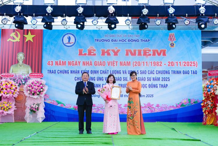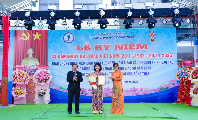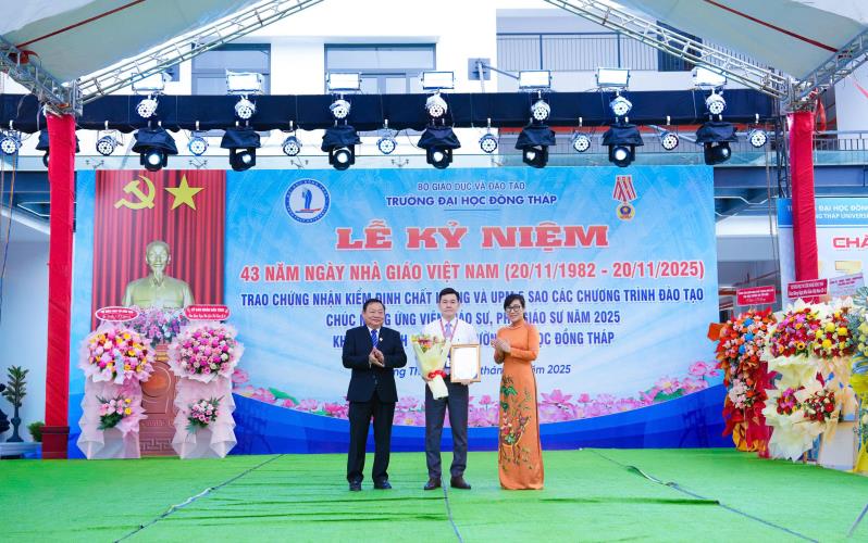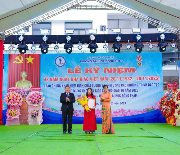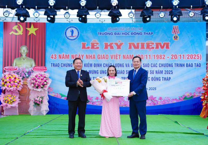 Trong không khí ấm áp tri ân các thầy cô giáo tháng 11, Trường Đại học Đồng Tháp long trọng tổ chức Lễ Kỷ niệm 43 năm Ngày Nhà giáo Việt Nam (20/11/1982 – 20/11/2025). Dịp này, Nhà trường công bố nhiều kết quả nổi bật trong công tác kiểm định chất lượng giáo dục, chúc mừng đội ngũ nhà giáo được công nhận đạt chuẩn chức danh Giáo sư, Phó Giáo sư năm 2025, đồng thời khánh thành Cổng A – Công trình mang dấu ấn của hành trình hơn 20 năm phát triển và hội nhập, là biểu tượng và khát vọng của Nhà trường.