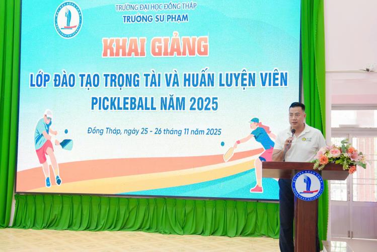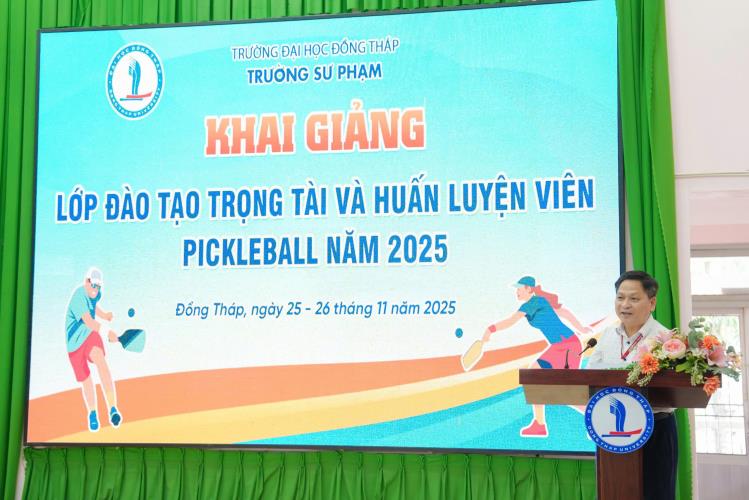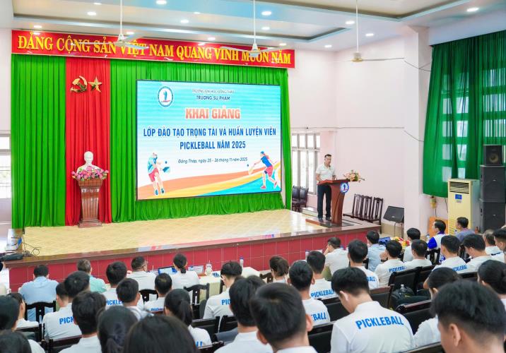 Ngày 25/11, Trường Đại học Đồng Tháp tổ chức khai giảng Lớp Huấn luyện viên và Trọng tài Pickleball năm 2025 với sự tham gia của hơn 60 học viên tham gia. Khóa học được thiết kế để tạo môi trường rèn luyện chuyên nghiệp, giúp học viên tiếp cận kiến thức nền tảng, từng bước nâng cao kỹ năng và trang bị năng lực cần thiết cho vai trò trọng tài và huấn luyện viên Pickleball.