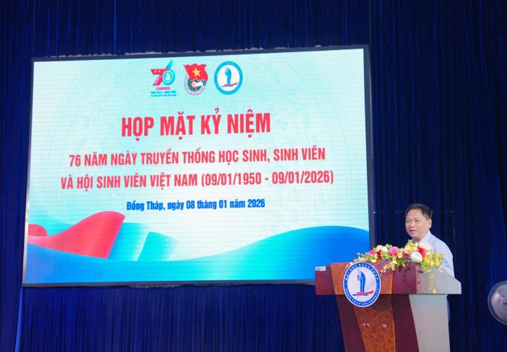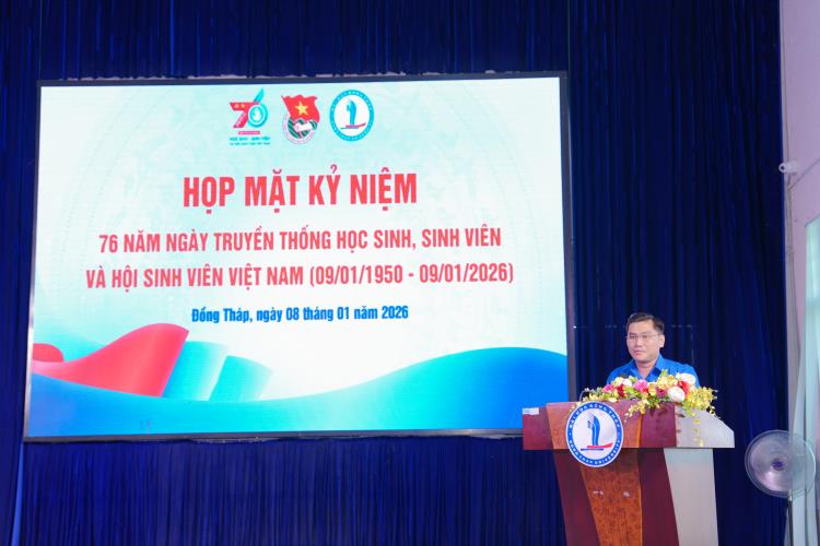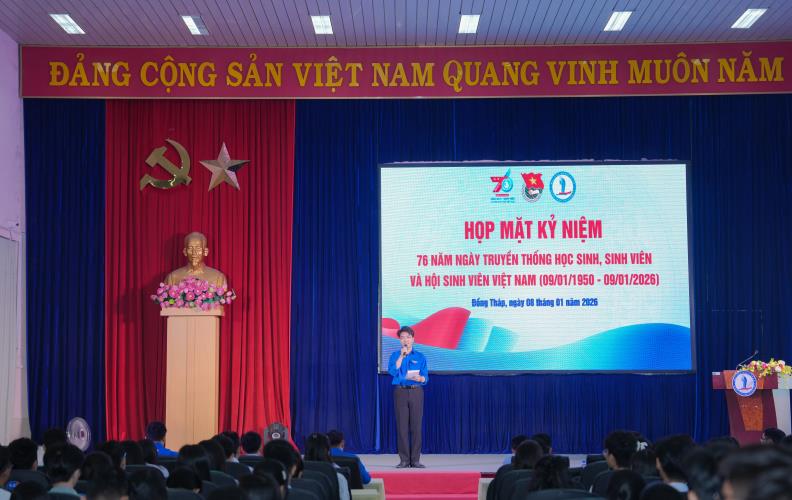 Ngày 08/01, Trường Đại học Đồng Tháp phối hợp với Ban Thường vụ Tỉnh đoàn Đồng Tháp long trọng tổ chức Chương trình kỷ niệm 76 năm Ngày truyền thống Học sinh, sinh viên và Hội Sinh viên Việt Nam (09/01/1950 – 09/01/2026).