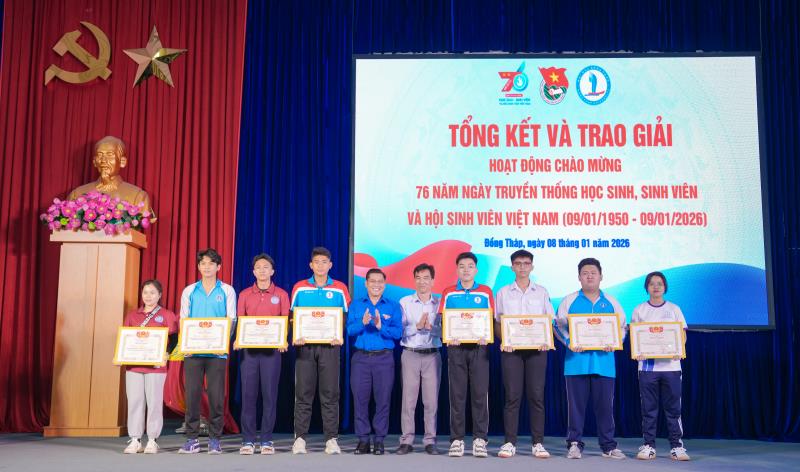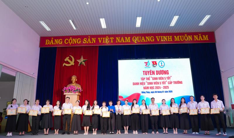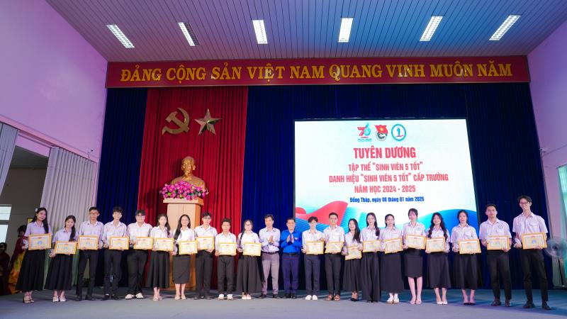 Trong khuôn khổ chương trình, Ban Thường vụ Tỉnh đoàn, Đoàn trường và Hội Sinh viên Việt Nam Trường Đại học Đồng Tháp tuyên dương các cá nhân đạt danh hiệu và giải thưởng ở cấp Trung ương và cấp trường. Cụ thể, 05 sinh viên được trao danh hiệu “Sinh viên 5 tốt” cấp Trung ương năm học 2024 – 2025 và 02 sinh viên được trao Giải thưởng “Sao Tháng Giêng” năm 2025. Dịp này, Ban Giám hiệu Trường Đại học Đồng Tháp đã trao giấy khen cho 01 sinh viên đạt Giải thưởng “Sao Tháng Giêng” cấp Trung ương và 29 sinh viên đạt danh hiệu “Sinh viên 5 tốt” tiêu biểu cấp trường.