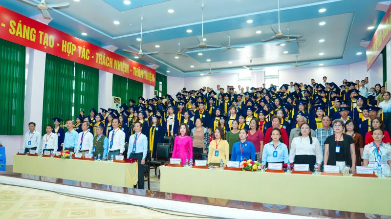 Tham dự chương trình có TS. Nguyễn Quốc Vũ – Phó Hiệu trưởng Nhà trường, cùng quý thầy, cô là cán bộ quản lý, giảng viên, chuyên viên; đại diện các phòng, ban, khoa, trung tâm của Trường và 145 tân cử nhân cùng người thân, gia đình, bạn bè.