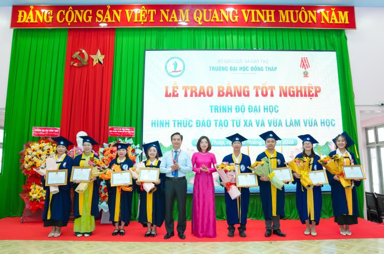 Ngày 17/01, tại Giảng đường 1, Trường Đại học Đồng Tháp long trọng tổ chức Lễ trao bằng tốt nghiệp cho sinh viên các lớp đào tạo hình thức từ xa và vừa làm vừa học năm 2026.