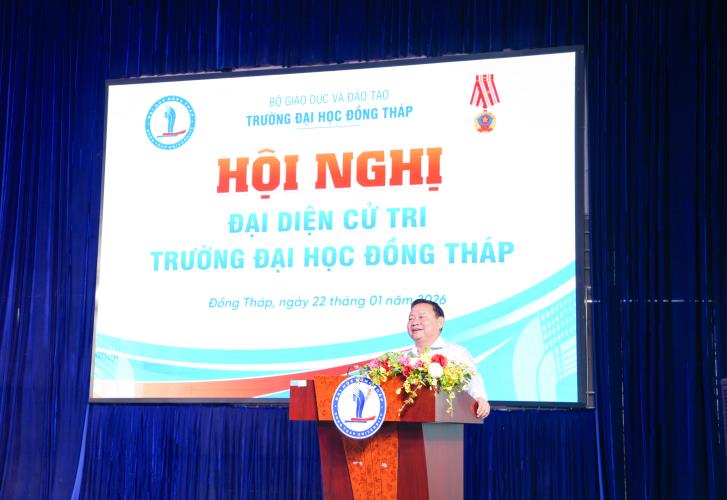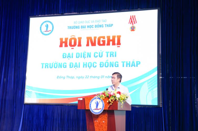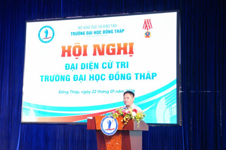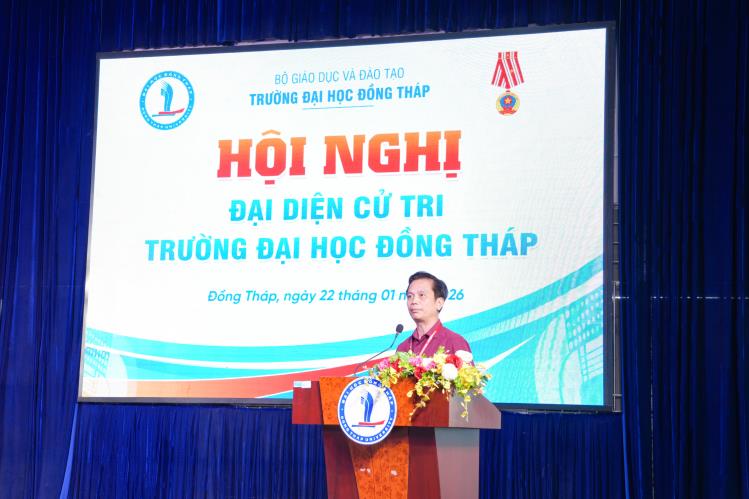 Phát biểu tại Hội nghị, PGS.TS. Hồ Văn Thống - Phó Bí thư Đảng uỷ, Hiệu trưởng Nhà trường đại diện Tập thể lãnh đạo Trường Đại học Đồng Tháp phát biểu ý kiến chỉ đạo, định hướng tại Hội nghị. Đồng thời, giới thiệu TS. Trương Tấn Đạt - Bí thư Đảng ủy Nhà trường tham gia ứng cử Hội đồng nhân dân tỉnh Đồng Tháp, nhiệm kỳ 2026 - 2031.