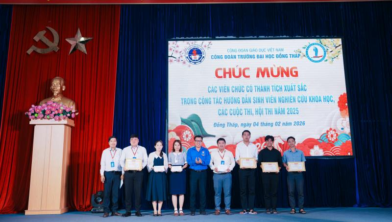 Trong khuôn khổ chương trình, Công đoàn Trường tổ chức tuyên dương, khen thưởng các tập thể và cá nhân là viên chức, người lao động, đoàn viên công đoàn có nhiều thành tích tiêu biểu trong năm 2025. Hoạt động nhằm ghi nhận những đóng góp tích cực trong công tác giảng dạy, nghiên cứu khoa học, hướng dẫn sinh viên tham gia và đạt kết quả tốt tại các hoạt động học thuật. Qua đó, kịp thời động viên, khích lệ tinh thần lao động sáng tạo, thi đua hoàn thành tốt nhiệm vụ được giao trong toàn Trường.
