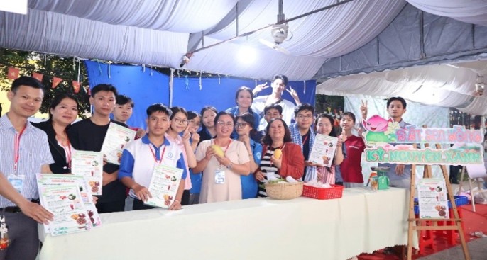 Nhóm sinh viên hoạt động tại gian hàng “Ấu Sen Mộc”