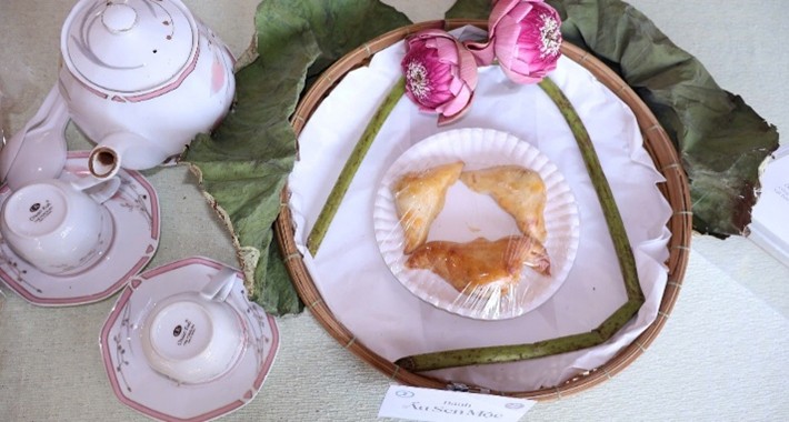 Khách tham quan chụp hình tại gian hàng “Ấu Sen Mộc”