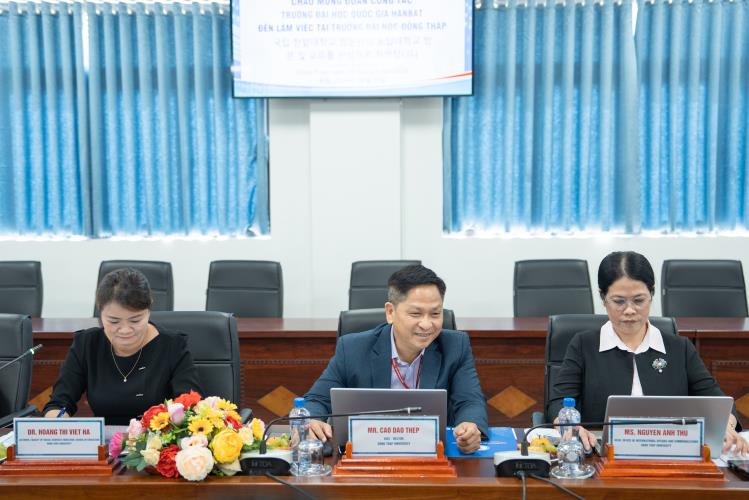 Tham dự buổi làm việc, về phía đoàn công tác có Ông Kim Young Rok, Trưởng đại diện văn phòng Đại học Quốc gia Hanbat tại Việt Nam; Ông Lee Sang Don, Đại diện văn phòng Đại học Quốc gia Hanbat tại Chi nhánh miền Nam cùng các thành viên. Về phía Trường Đại học Đồng Tháp có ThS. GVC Cao Dao Thép, Phó Hiệu trưởng Nhà trường cùng lãnh đạo các phòng, khoa liên quan.