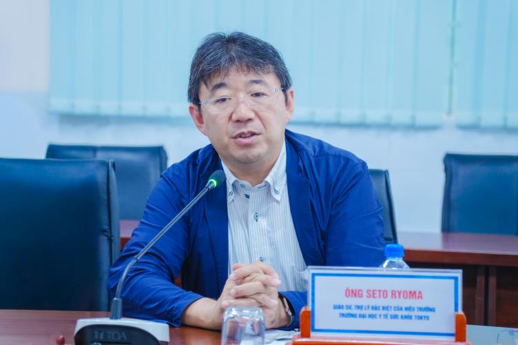 GS. Seto Ryoma, Trợ lý đặc biệt của Hiệu trưởng Trường Đại học Y tế Sức khỏe Tokyo phát biểu tại chương trình